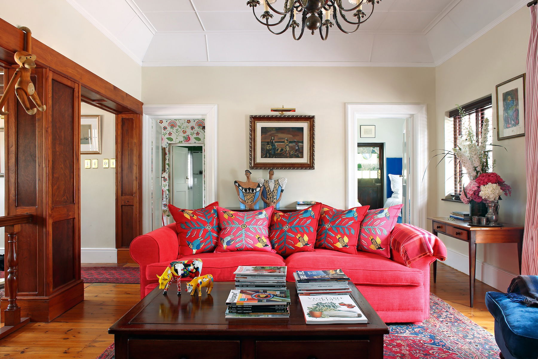 Tucked away in Stellenbosch’s picturesque Devon Valley, Le Grand Jardin embraces this philosophy. Here, luxury and art blend harmoniously, dissolving the boundaries between living space and gallery. The Sir Herbert Baker-style manor house, dating back to 1934, awakens the senses with the hoot of night owls, the nostalgic scent of home-baked bread drifting from the kitchen, the fragrance of roses in the garden and a kaleidoscope of colours —from the pink-tinged Helderberg Mountains to the vibrant green of freshly mowed lawns.