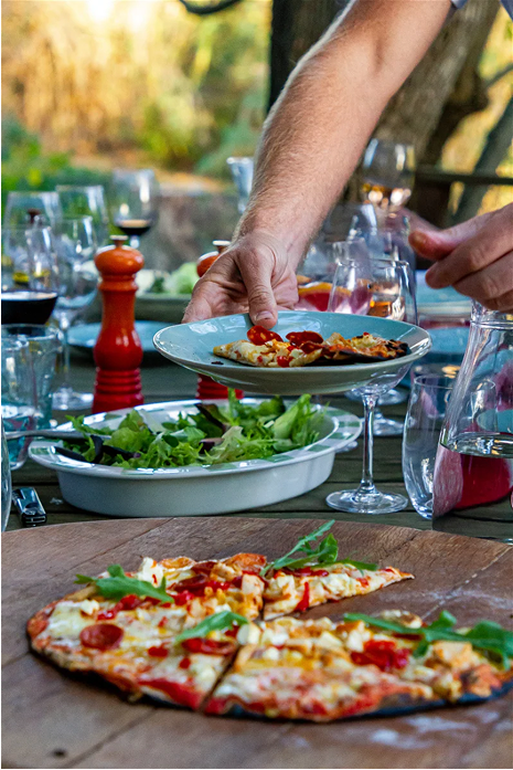 Pizza experience: craft your own pizzas overlooking the dam, then share dessert at the fire circle.